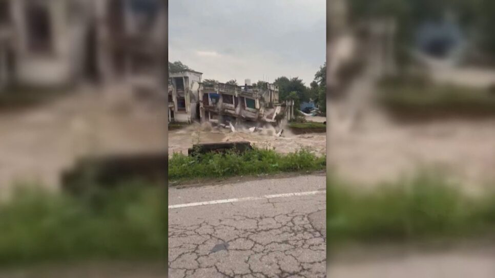 Um edifício em Madhopur, no estado de Punjab, no norte da Índia, desabou parcialmente nesta quarta-feira (27), conforme exibido em vídeo divulgado pelo Exército Indiano.
