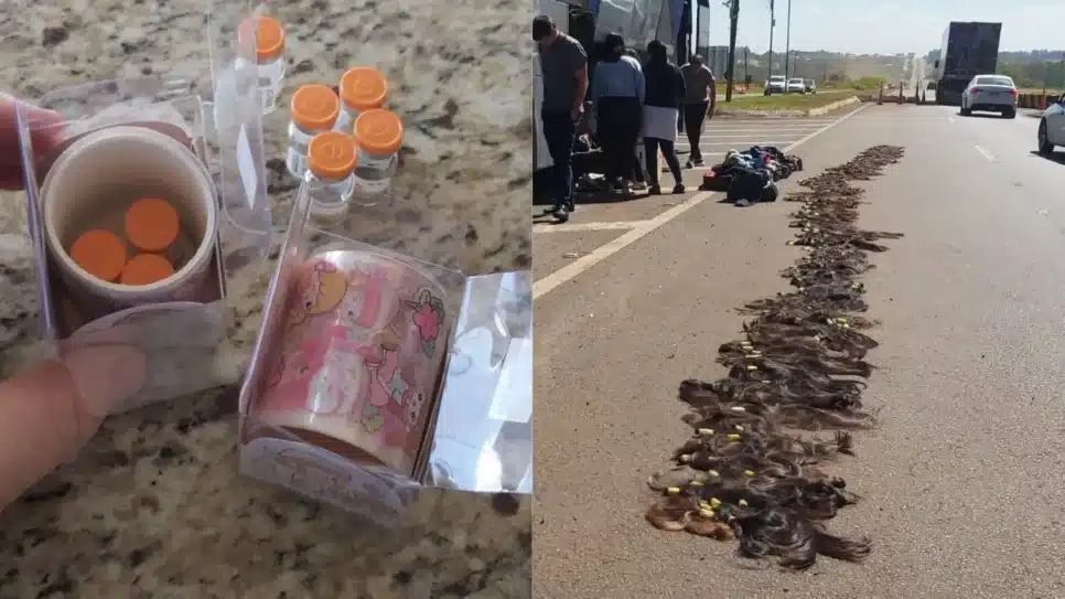 Além dos cabelos, os policiais descobriram que uma das passageiras transportava oito ampolas do medicamento tirzepatida, escondidas dentro de dois rolos de adesivos infantis. Este medicamento é frequentemente utilizado para emagrecimento, através das conhecidas canetas emagrecedoras.