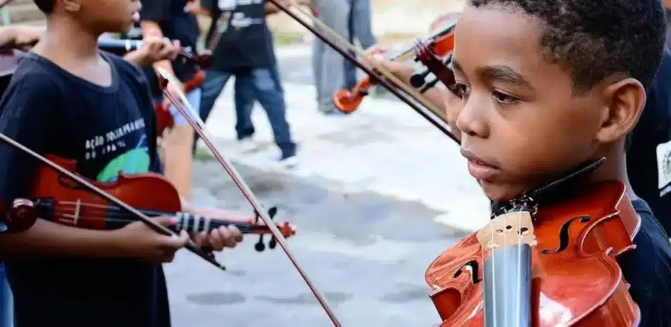 Uma iniciativa utiliza a música como meio de transformação social e exercício da cidadania para crianças e jovens em situação de vulnerabilidade social no Rio de Janeiro. A ASMB (Ação Social pela Música do Brasil) oferece oficinas de música de concerto gratuitas há aproximadamente 30 anos.
