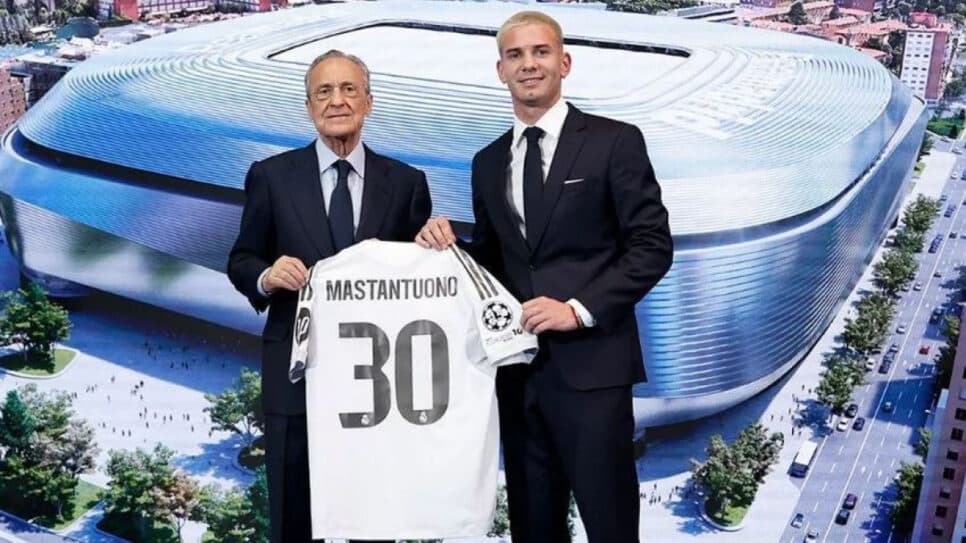 O Real Madrid apresentou nesta quinta-feira (14) seu mais recente reforço. O argentino Franco Mastantuono realizou, no dia em que atingiu os 18 anos, seu primeiro pronunciamento como jogador do clube.