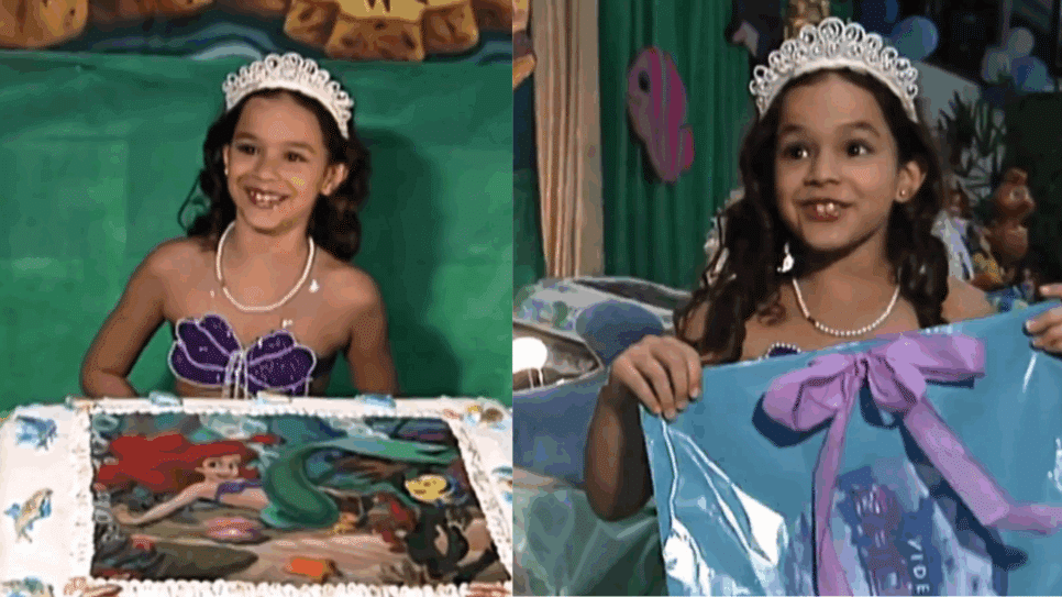A atriz Bruna Marquezine comemora seus 30 anos nesta segunda-feira (4) e, para celebrar, seguidores divulgaram imagens de sua festa de aniversário de 8 anos, ocorrida em 2003. A comemoração foi registrada em uma reportagem e teve como tema “A Pequena Sereia”, da Disney.