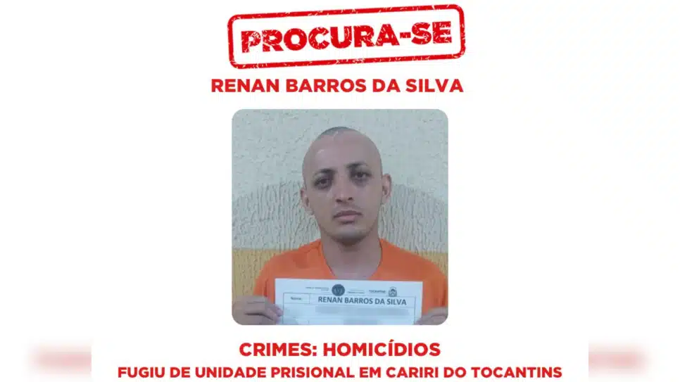 Renan fugiu de um presídio de segurança máxima no sul do Tocantins, junto com outro detento, Gildásio Silva Assunção, de 47 anos. A Secretaria da Segurança Pública (SSP-TO) informou que a fuga ocorreu após a dupla serrar as grades da cela e escalar o alambrado do presídio usando uma “teresa”, uma corda improvisada feita de lençóis.