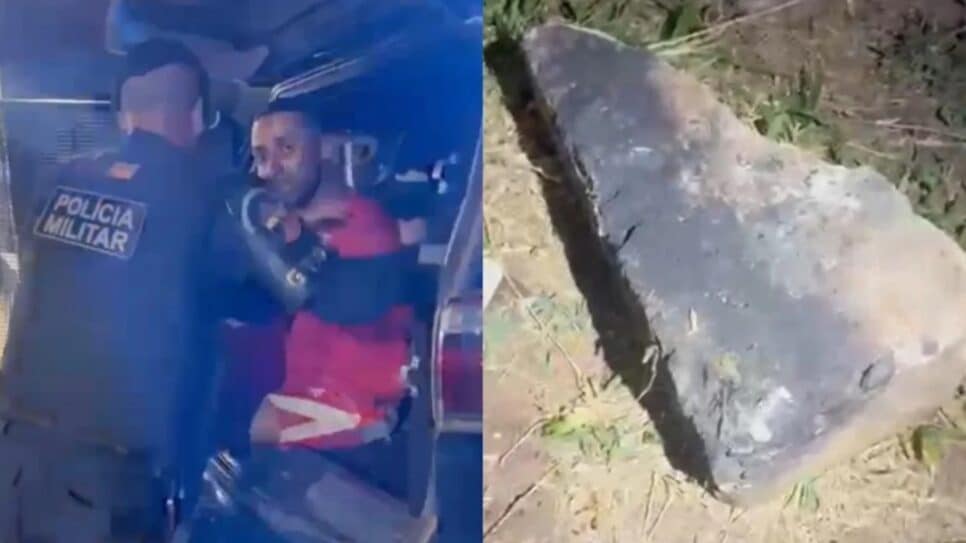 O objeto, de tamanho considerável, atingiu o rosto da vítima com força, causando ferimentos graves. A suspeita é de que a vítima tenha sofrido um afundamento no crânio, uma lesão de alta gravidade. O agressor fugiu do local, mas foi detido pelo Grupo Tático Operacional 29 (GTOP 29) em um terreno baldio próximo.
