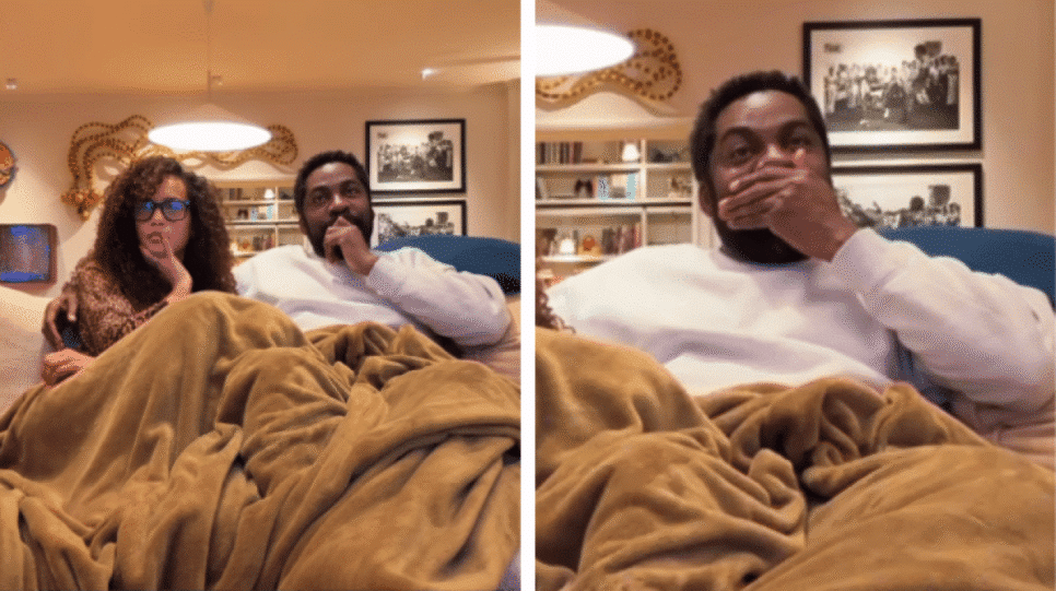 “Por aqui me mantive atenta e meu marido emocionado”, escreveu Taís Araújo na publicação. Ao longo da cena, Lázaro Ramos demonstra surpresa e dá muita risada.