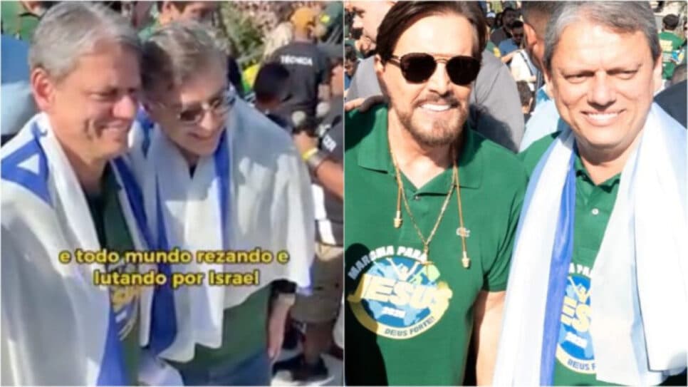 O governador de São Paulo, Tarcísio de Freitas (Republicanos), compareceu à 33ª edição da Marcha para Jesus nesta 5ª (19.jun.2025) com uma bandeira de Israel nas costas. “Estamos aqui orando por Israel, sabemos o papel que Israel tem para o mundo ocidental, sabemos que trata-se do povo escolhido, eu creio nisso, e estamos aqui em oração, para que Deus estabeleça a paz, para que Deus dê a vitória”, declarou.