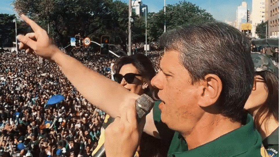 O governador, anteriormente visto em cima de um dos carros de som da marcha evangélica, carregado por uma bandeira de Israel. O país do Oriente Médio voltou a ser noticiado em relação ao início de um conflito com o Irã na semana anterior.