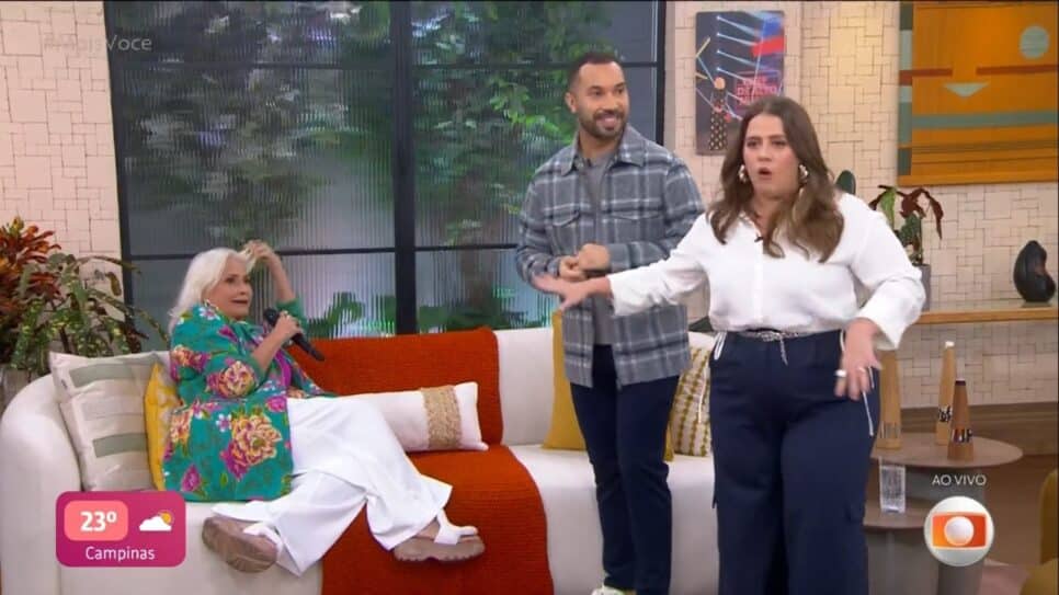 A entrevistada do Mais Você surpreende Tati Machado e o repórter reage: “Não vou nem perguntar”.