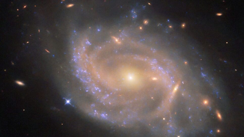 O Telescópio Espacial Hubble capturou uma imagem da galáxia espiral NGC 3285B, situada a 137 milhões de anos-luz de distância, na constelação de Hidra, também chamada de Serpente d’Água.