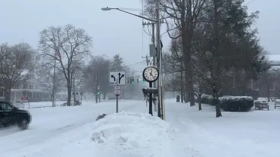 A neve está caindo em Connecticut a uma taxa de 5 a 7 centímetros por hora, conforme informou o governador Ned Lamont em uma coletiva de imprensa na noite de domingo, 25 de dezembro. A polícia estadual e o Departamento de Transportes têm registrado veículos presos nas estradas, já que a precipitação está ocorrendo mais rapidamente do que as máquinas conseguem remover a neve.
