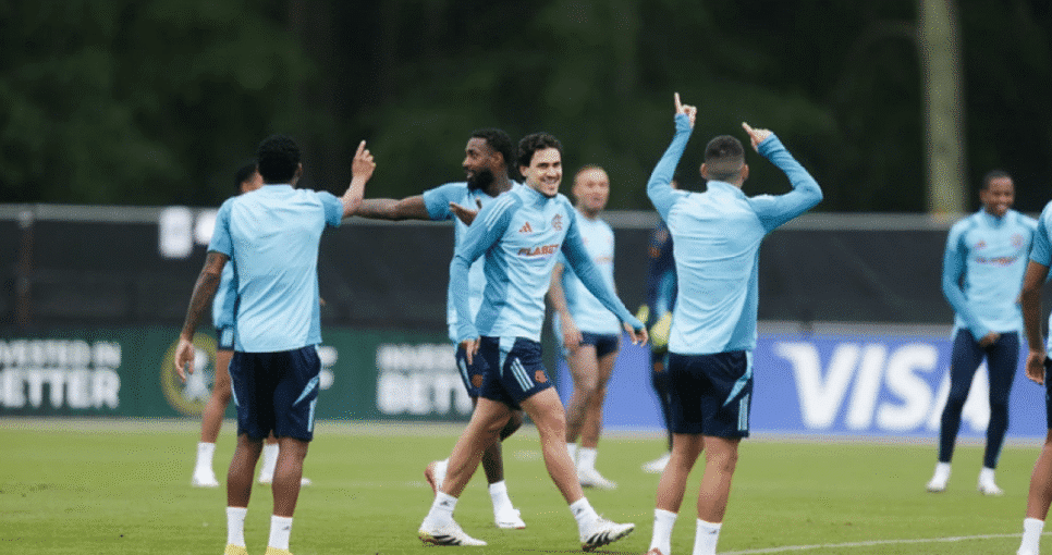 Em preparação para enfrentar o Chelsea na segunda rodada do Mundial de Clubes, o treinamento do Flamengo nesta quarta-feira (18) precisou começar um pouco mais tarde do que o previsto.