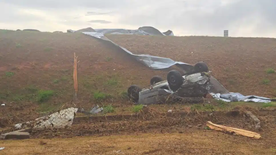 Além do veículo, os ventos intensos destelharam todo o galpão e entortaram estruturas de ferro da fábrica. A situação causou grande preocupação e mobilizou equipes de resgate e apoio.