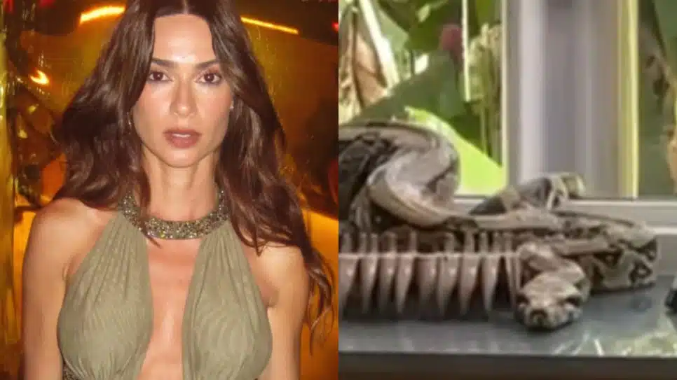A serpente, aparentemente, entrou pela janela aberta e se acomodou em um aparador. Um detalhe curioso chamou a atenção: a cobra permaneceu perto de uma escultura de madeira longa, como se estivesse tentando se fundir com a decoração. Apesar do tamanho do animal, a atriz conseguiu manter o bom humor.