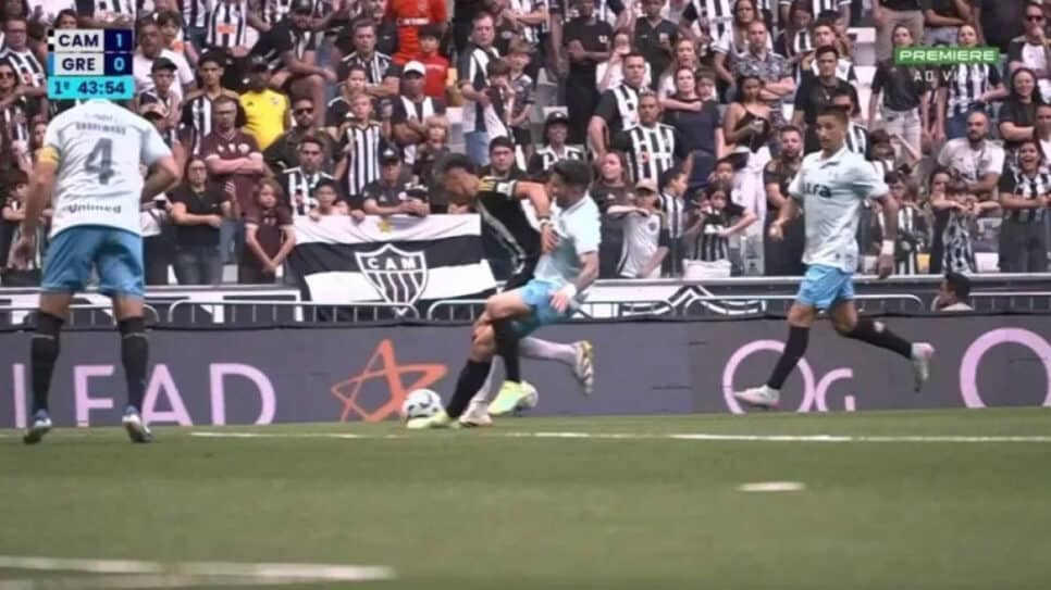 O Villasanti teve uma lesão no joelho, fazendo com que o pé dele ficasse “preso” no gramado da Arena MRV.