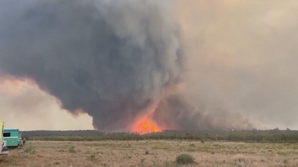 A Administração de Terras do estado do Utah publicou um vídeo na segunda-feira (14) que exibe um tornado de fogo surgindo do incêndio florestal de Deer Creek, próximo à cidade de La Sal.