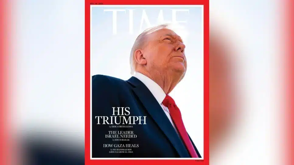 A matéria destaca o trabalho do republicano em relação ao plano de cessar-fogo em Gaza, que teve início na última semana e resultou na libertação de todos os reféns vivos. A capa traz o título “O triunfo dele”, referindo-se ao presidente, e as frases “O líder que Israel precisava” e “Como Gaza se recupera”.