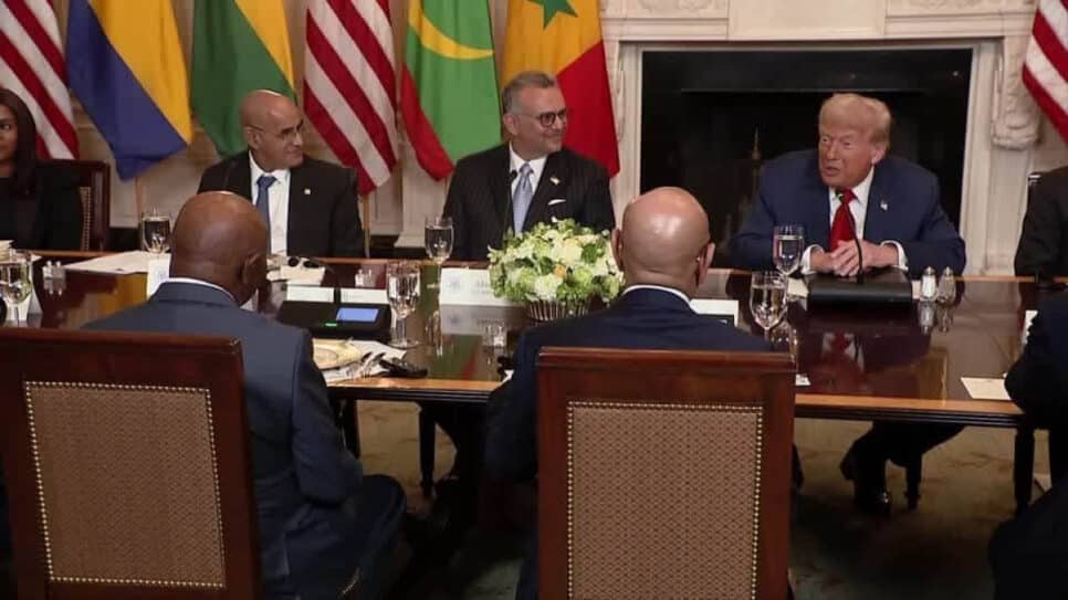 O presidente dos Estados Unidos, Donald Trump, reuniu líderes de cinco países africanos na quarta-feira (9) na Casa Branca. Em uma conversa com o presidente da Libéria, Trump comentou que Joseph Boakai falava “um inglês lindo” e indagou sobre onde ele havia aprendido a língua.