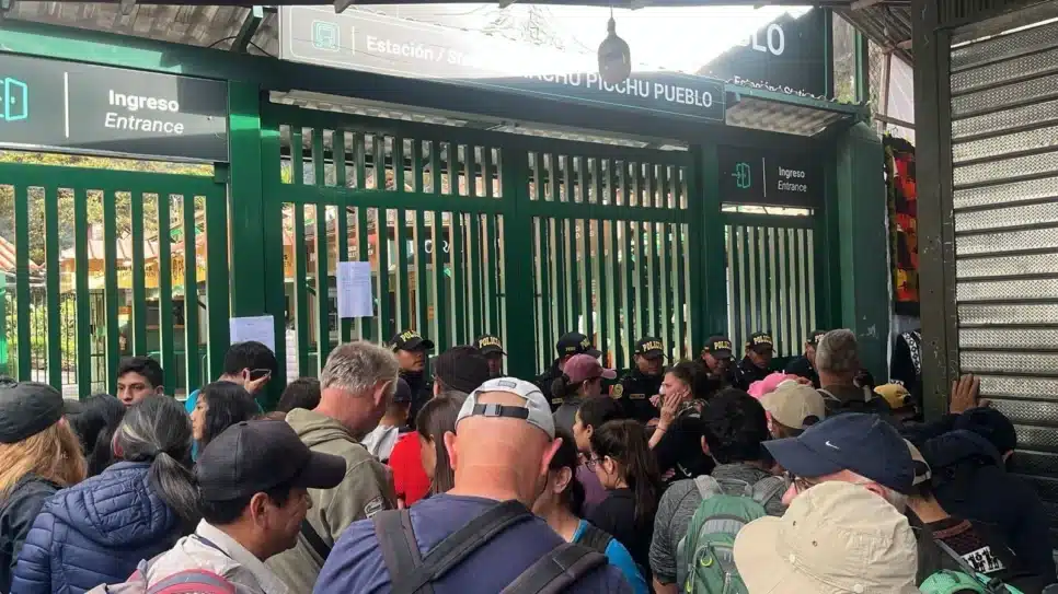 A polícia do Peru está à frente das catracas da estação para impedir o acúmulo de pessoas. Não há expectativa de retomada da operação dos trens.