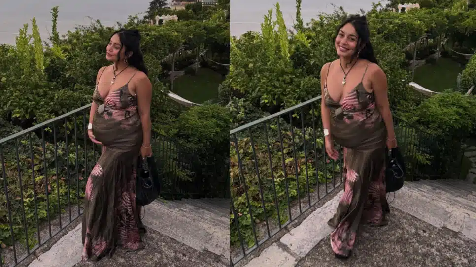 A atriz Vanessa Hudgens, 36 anos, famosa por seu papel em “High School Musical”, mostrou sua barriga de gestação em novas fotos. Nas imagens, ela compareceu ao casamento da atriz Alison Ingelstrom, que ocorreu em um castelo na Itália.