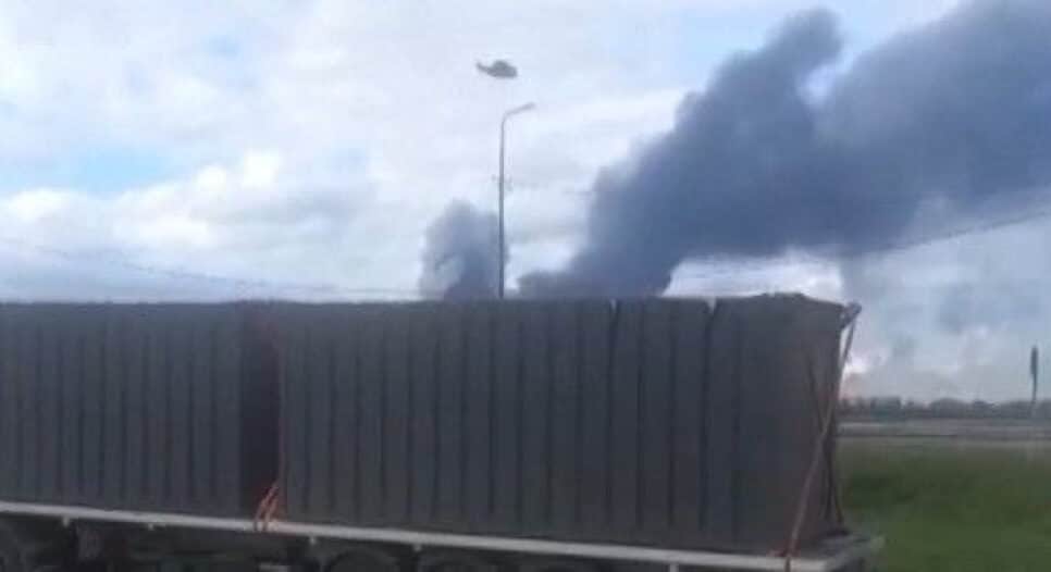 O fumo que se visualiza no vídeo provém da base aérea de Belaya.