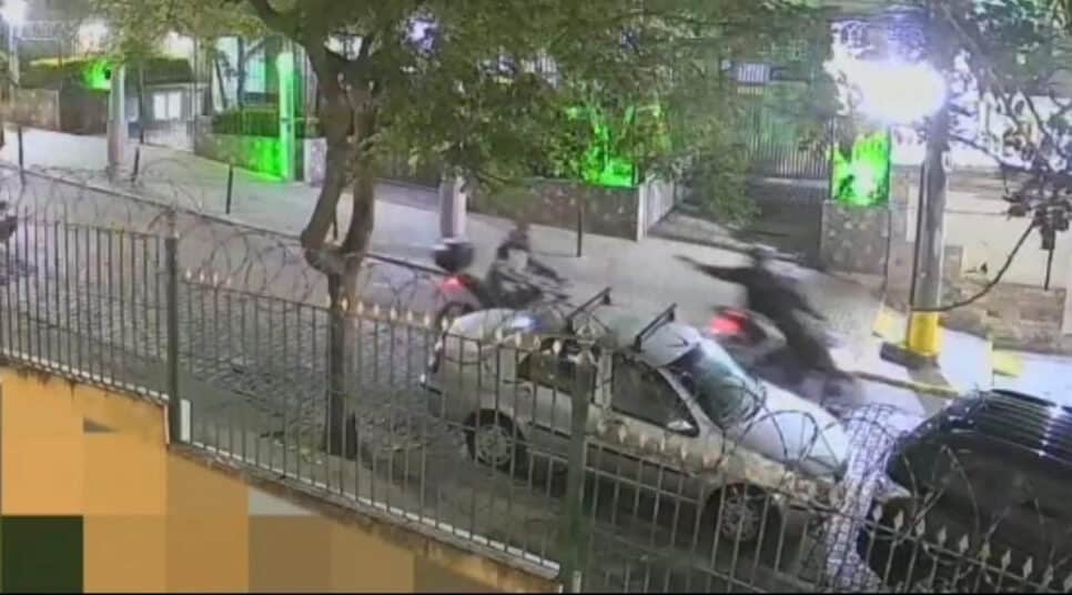 Câmeras de segurança registraram, na noite de quinta-feira (28), uma tentativa de assalto na Zona Norte do Rio de Janeiro. As imagens mostram uma troca de tiros nas imediações da Rua Santos Titara, em Todos os Santos, quando dois indivíduos tentam roubar a motocicleta de um agente socioeducativo, que reagiu. Após a ação, os suspeitos abandonaram a moto e roubaram um automóvel para fugir.