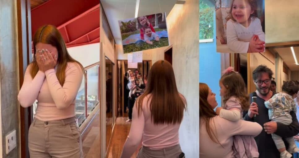 A influenciadora Viih Tube, 24 anos, emocionou-se no sábado (2) ao retornar para casa com uma surpresa preparada por sua família. Ela foi recebida pelo marido, Eliezer, 35, e pelos filhos, Lua, 2, e Ravi, de oito meses.