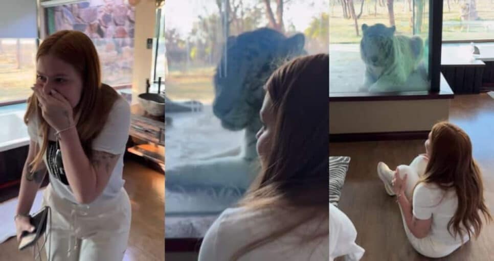 Viih Tube, 25 anos, demonstrou emoção na quinta-feira (4) ao receber a primeira surpresa em sua viagem com o marido, Eliezer, 35, na África do Sul. Além de exibir sua chegada ao Shekinah Lion and Game Lodge, um resort de luxo em Dryfsand, ela ficou surpresa ao se deparar com um tigre.