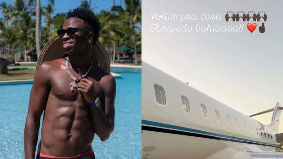 As férias de Vini Jr. na Bahia concluíram-se neste domingo, 28. O jogador publicou uma foto de um jato particular, anunciando sua partida. O momento foi compartilhado com a namorada, Virginia Fonseca, e seus filhos. A publicação do jato Bombardier Global 6000, um dos modelos mais luxuosos do mundo, marcou o fim de um período de descanso na região sul da Bahia.