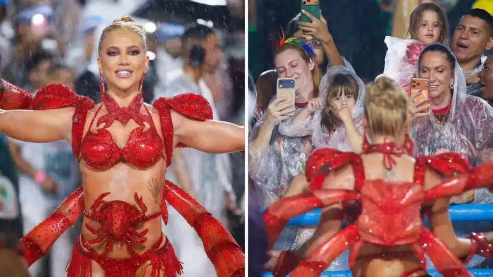 A influenciadora Virginia Fonseca, de 26 anos, realizou seu segundo e último ensaio na Marquês de Sapucaí, no Rio de Janeiro, na noite do último domingo (8). Como rainha de bateria, ela fez uma pausa em sua apresentação ao notar que suas filhas, Maria Alice e Maria Flor, estavam assistindo de perto.