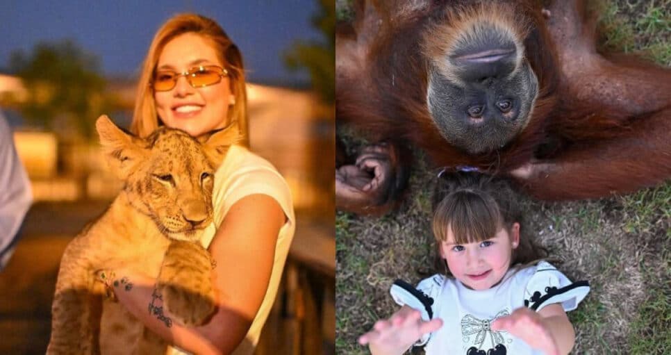 No local, onde era possível interagir com os animais, eles apareceram alimentando girafas e fazendo carinho em um chimpanzé. Em outra ocasião, a influenciadora apareceu segurando uma onça no colo.