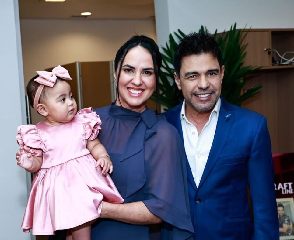 Zezé Di Camargo, 63 anos, apareceu com a esposa, Graciele Lacerda, 44, e a filha Clara, de sete meses, nos bastidores do festival Histórias – O Show do Século. A apresentação, que reúne vários artistas do sertanejo, acontecerá no Allianz Parque, em São Paulo, neste sábado (23).